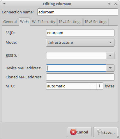 Linux machines don't always automatically detect the settings needed in order to connect to eduroam. We've found the best way to connect it to do the following: