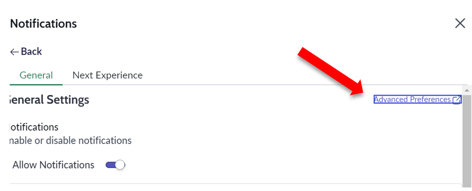 3. On the General Settings tab, you can enable and disable notifications by toggling the Allow Notifications setting.