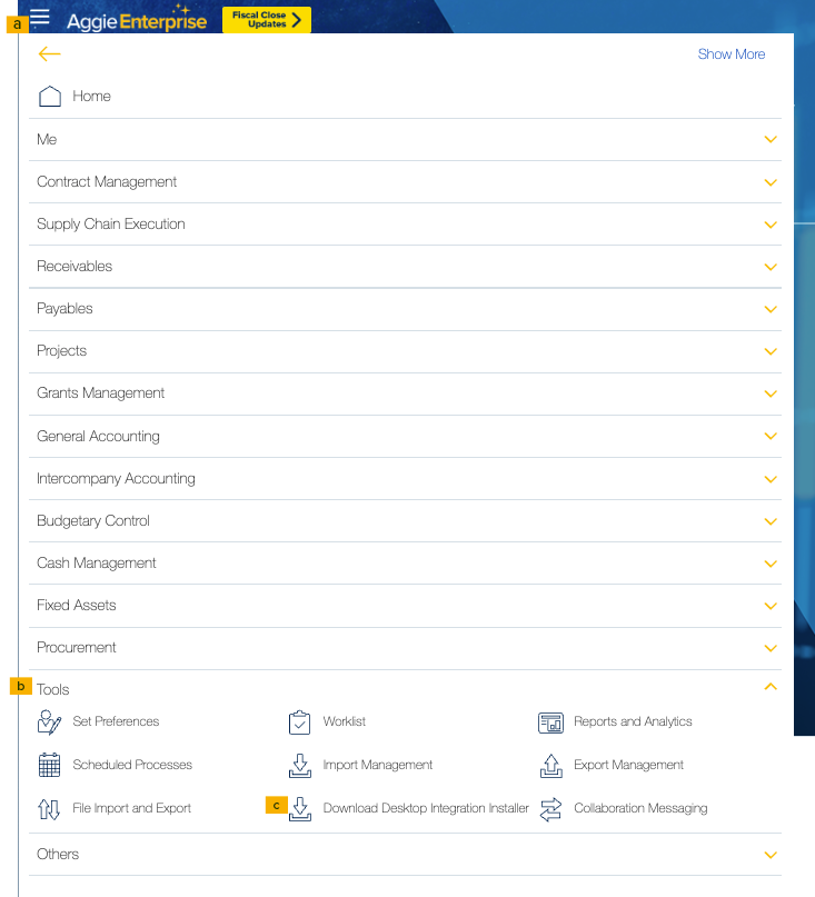 On the Aggie Enterprise Home page, click