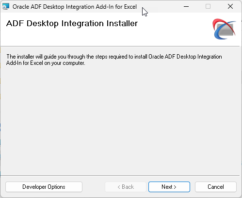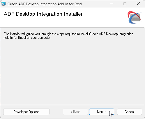 The ADF Desktop Integration Installer dialog box opens.