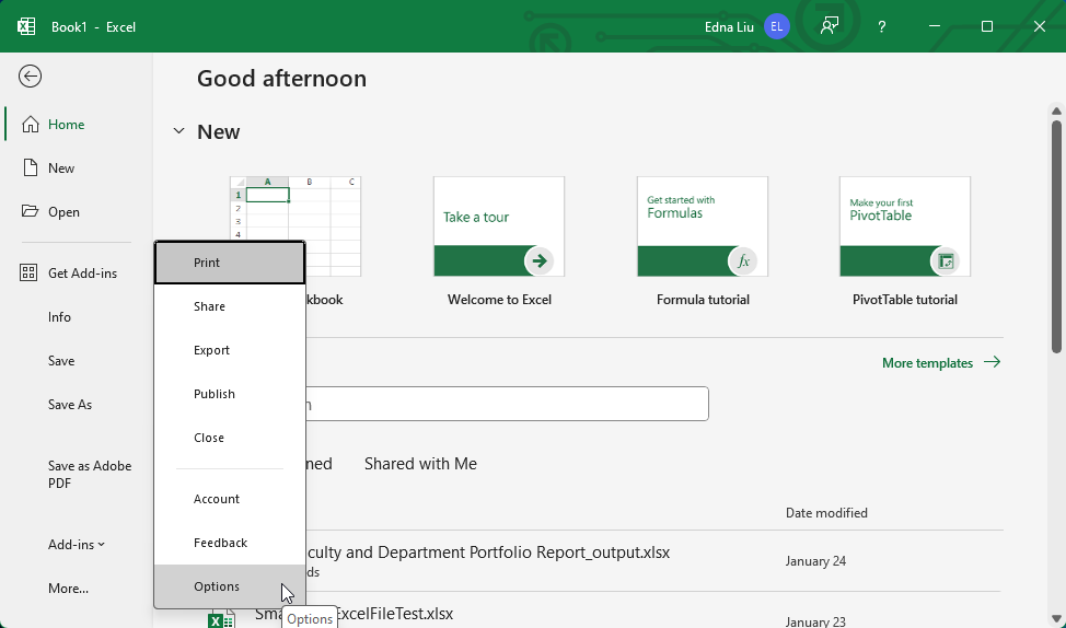 Choose File > More > Options.