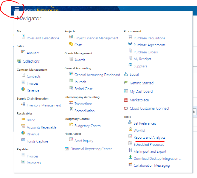 2. You will need to navigate to the "Reports and Analytics" application. Depending on your home screen configuration, this can be achieved either by: