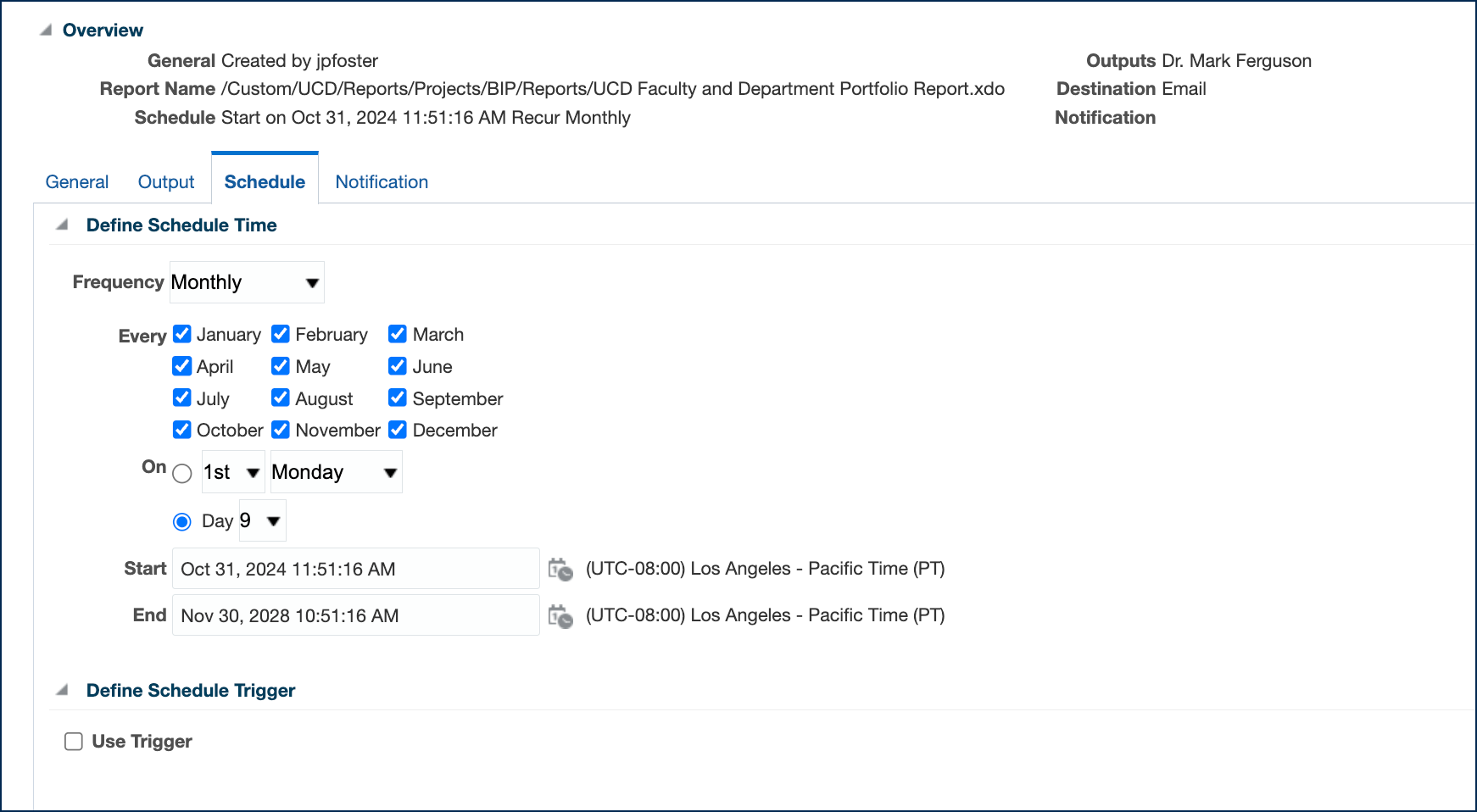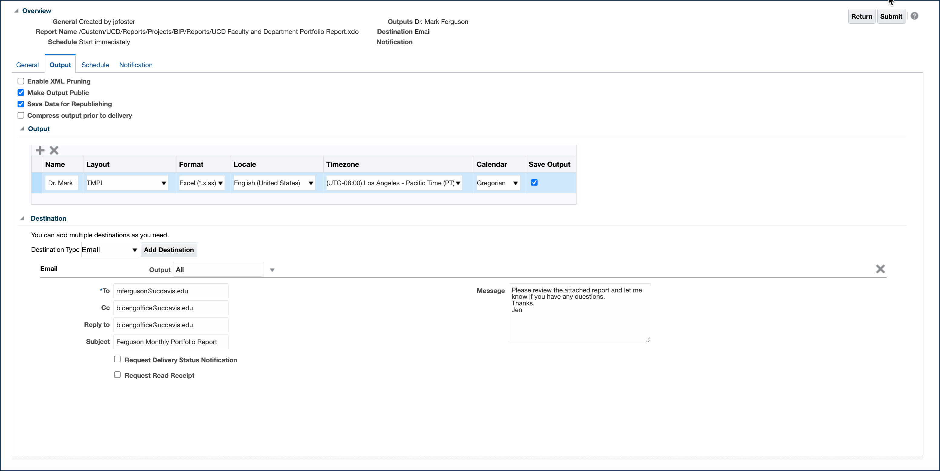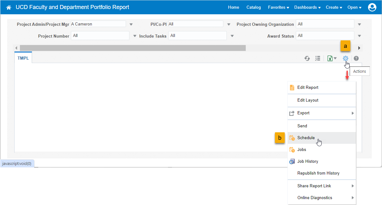 You run and schedule reports in the UCD Faculty and Department Portfolio Report page. To open the page: