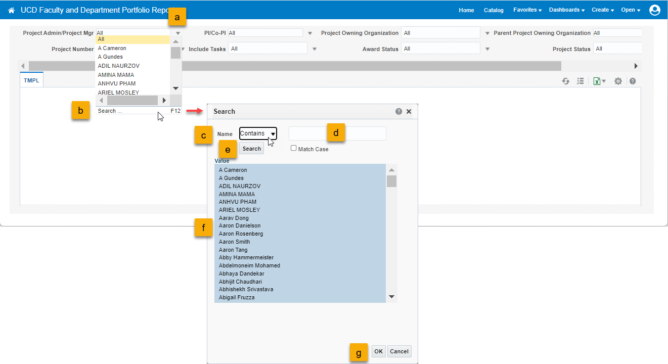1. Click next to the parameter name (for example, PI/Co-PI or Project Owning Org field).