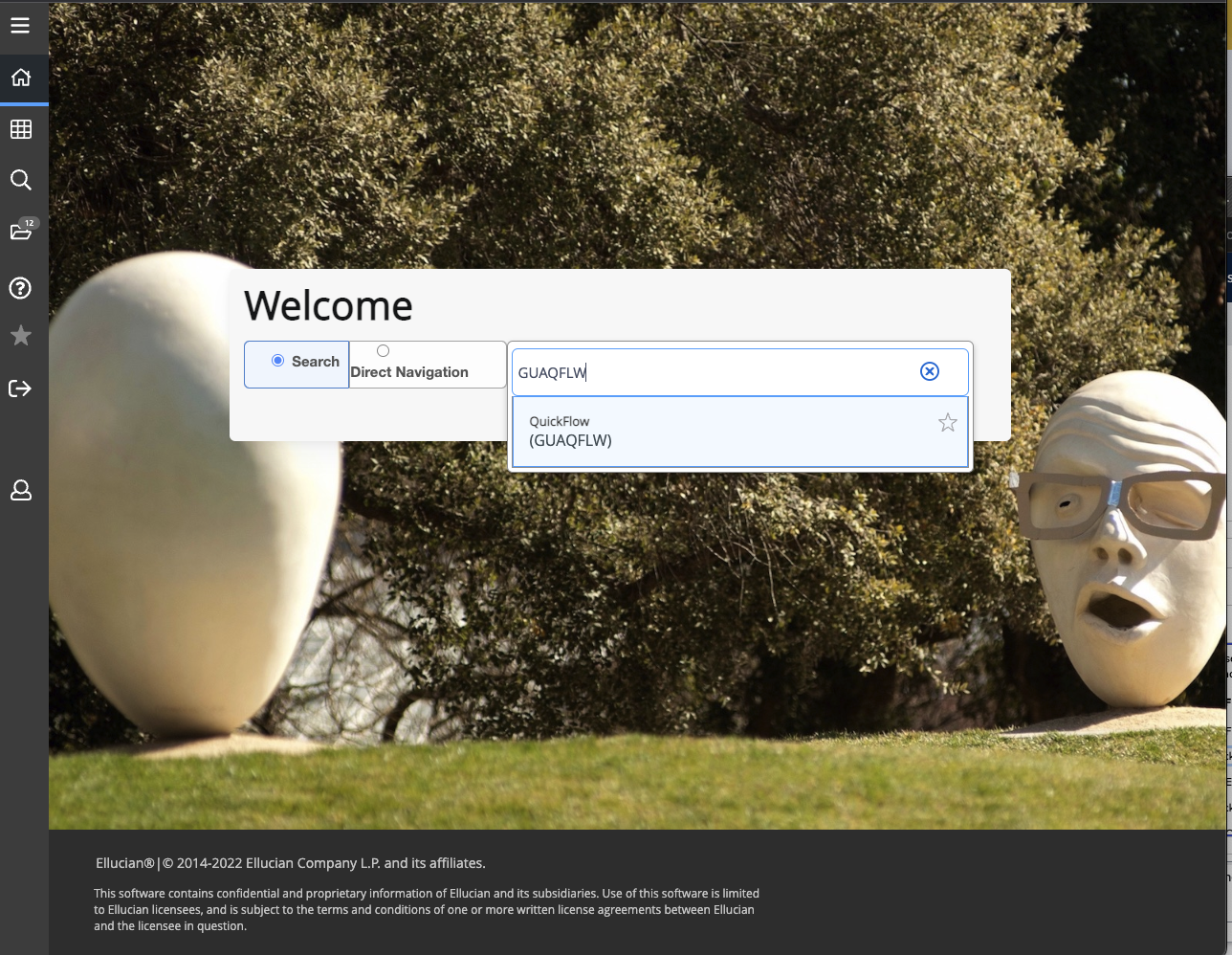 - From the Application Navigator (Banner) home page search for the QuickFlow application form (GUAQFLW).