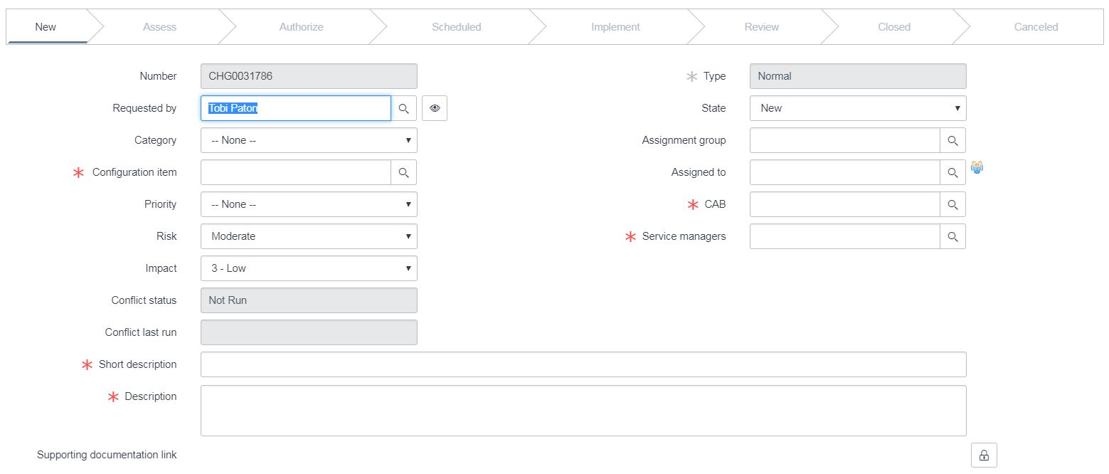 To submit a new Normal Change: