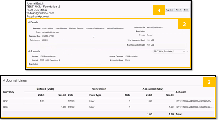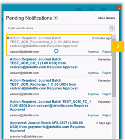 The approver will receive a journal approval notification, after the user has submitted the journal in the system.