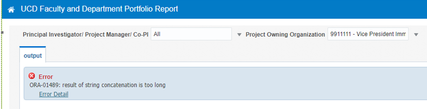 The UCD Faculty and Department Portfolio Report page opens.