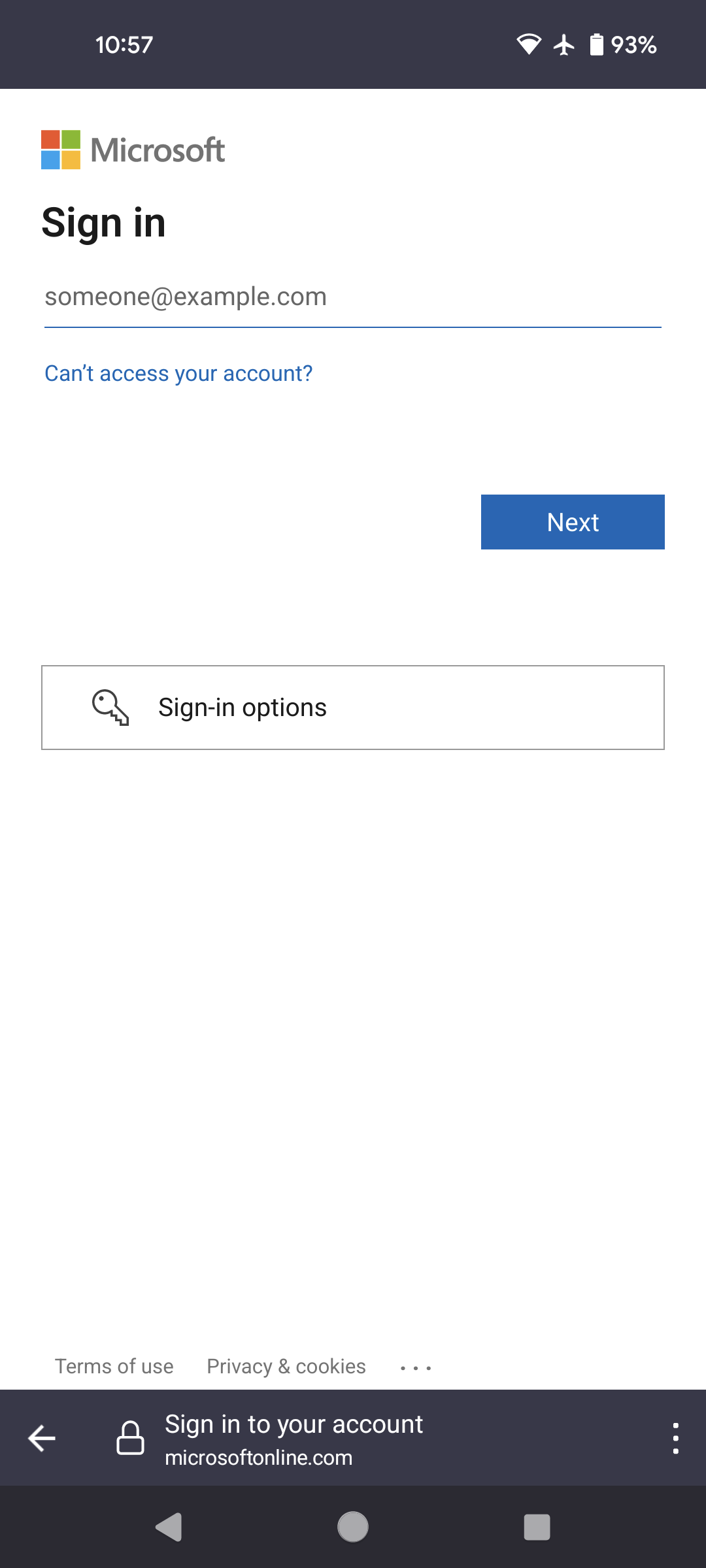 6. Your browser will launch and go to the Microsoft Online login page, which is a precursor to the UC Davis Active Directory Federation Services (ADFS) sign-in page. Enter your UC Davis email address for the first prompt, then your UC Davis account (Kerberos ID and passphrase) next, then click Sign In.