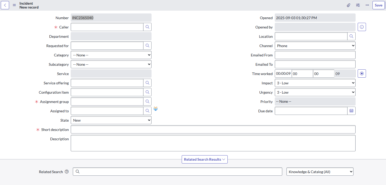 Knowledge Search Bar in Incident