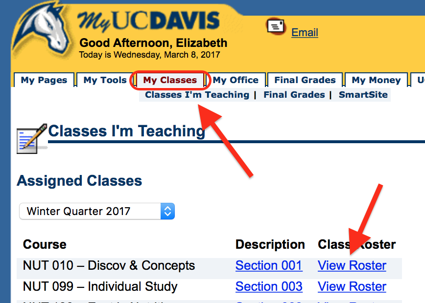 (2) MyUCDavis Rosters includes the following additional information: