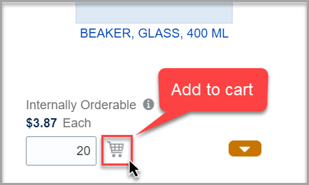 1. After locating the desired item(s) in the hosted or punchout catalog, click the Add to Cart button to add the item(s) to your Aggie Enterprise shopping cart.  Repeat the process above to add multiple items to your cart, or click on the shopping cart button to complete the cart checkout process.